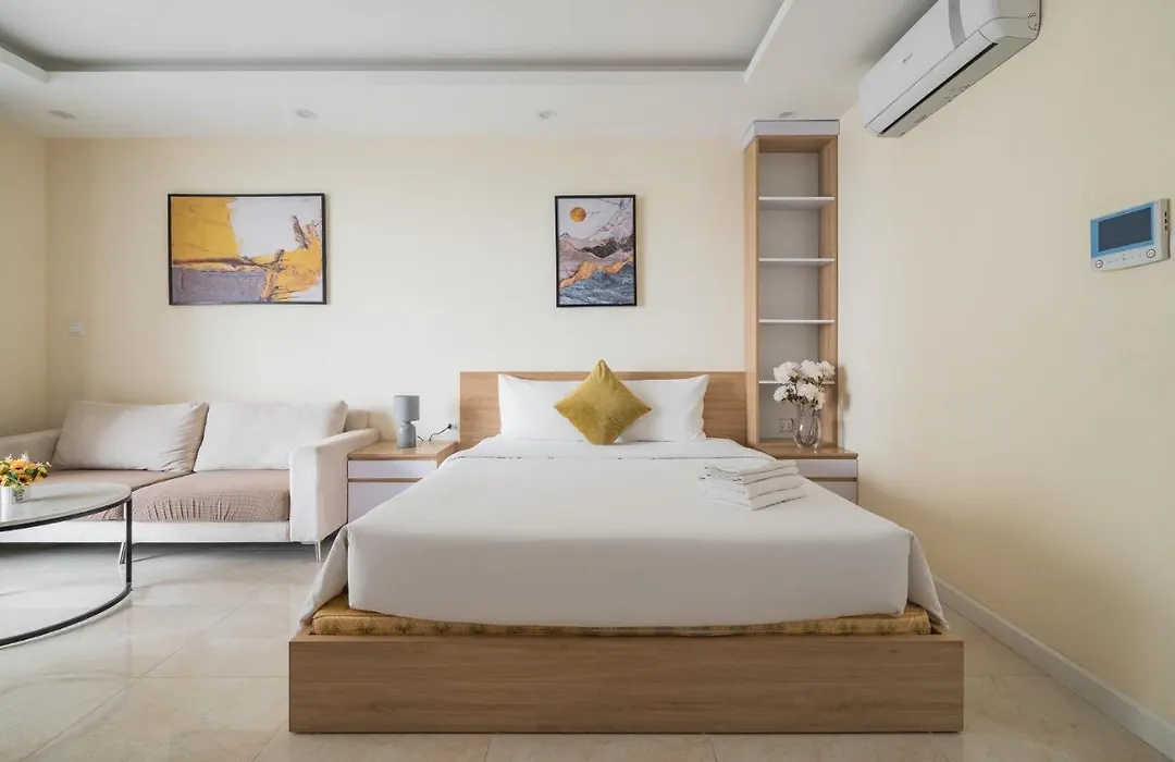 寝室1室のNk#Homestay#Dcapital#119Tranduyhung#Studio#C3 ハノイ市から徒歩でわずか5分離れたBigC Thang Longなどの市内の観光スポットへ行きやすいです。 ビジネスとレジャーの両方の目的でWiFiを利用できます。